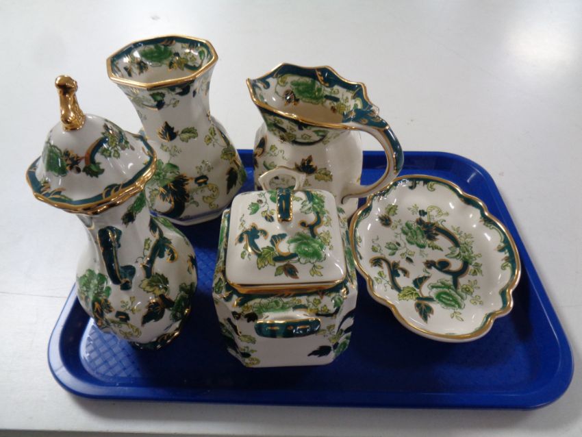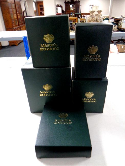 A tray containing five pieces of Masons Chartreuse china in original boxes