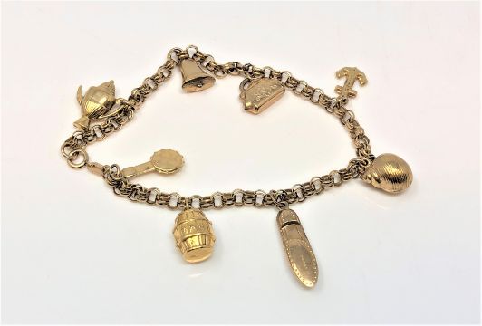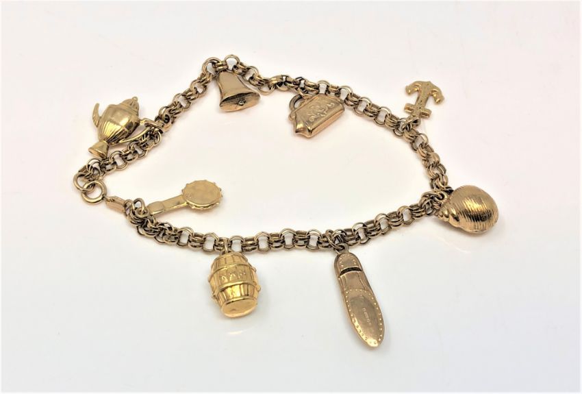 A 9ct gold charm bracelet, 8.8g.