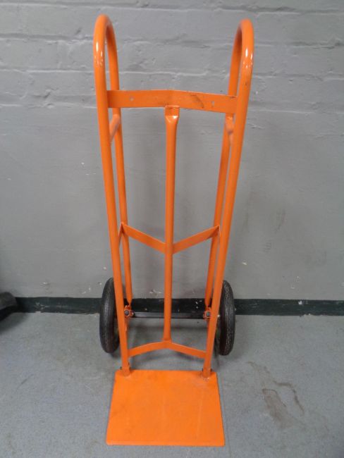 A heavy duty twin handled sack barrow with spring axle (thin tyres)