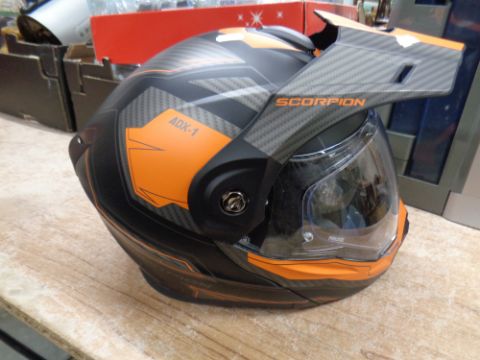 A Scorpion ADX-1 motorcycle helmet