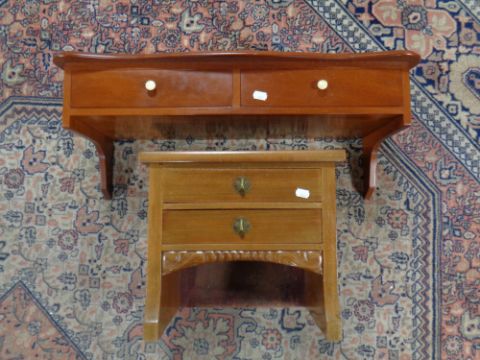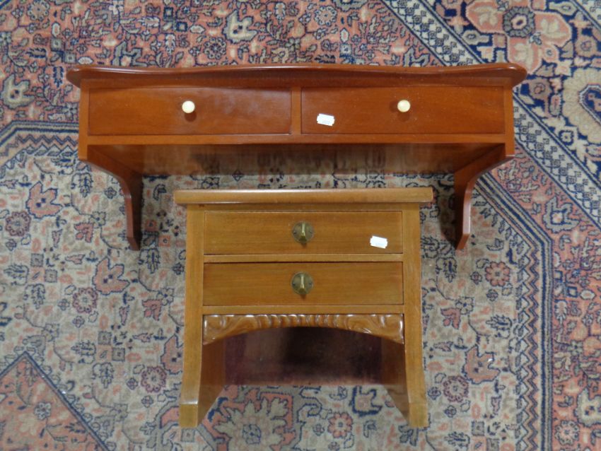 A mahogany wall shelf fitted two drawers and a further miniature chest