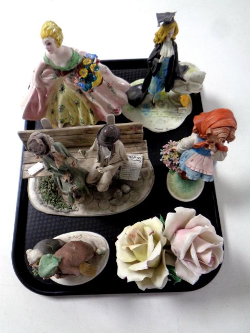 A tray containing six Italian figurines and ornaments