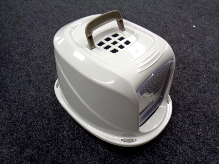 A box and a basket containing hose pipe on reel, extension reel, garden tools, galvanised watering can, coal scuttle, together with a pet litter box
