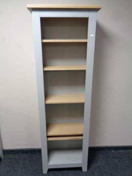 A set of contemporary oak painted narrow bookshelves (dove grey)