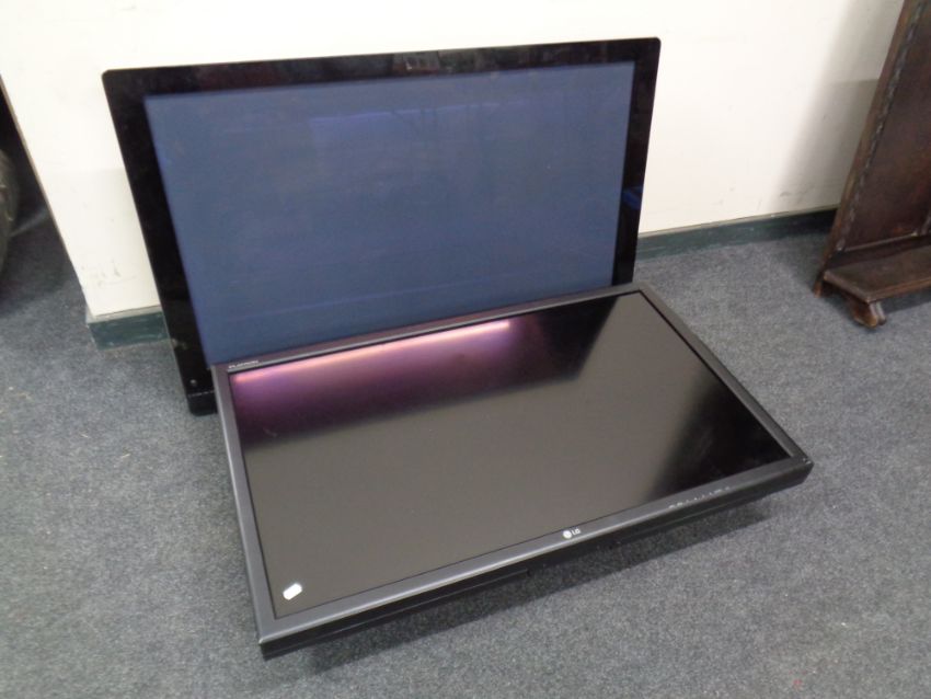 An LG Flat Tron 42'' LCD TV together with a Pioneer 43'' Plasma TV, no remotes or table stands
