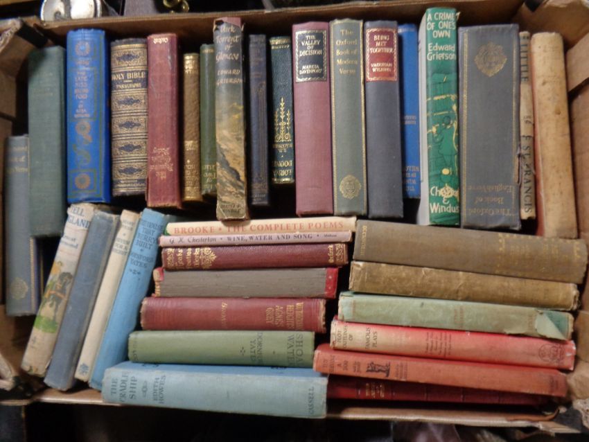 A box of vintage books to include Pilgrim's Progress, Wuthering Heights, Thomas Hardy etc
