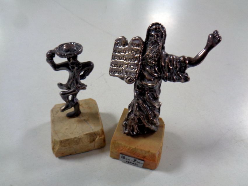 Two Ben Zion continental silver figures, Moses and figure dancing, mounted on stone bases