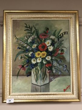 Continental school : Still life with flowers in a vase, oil on canvas, 32 x 39 cm