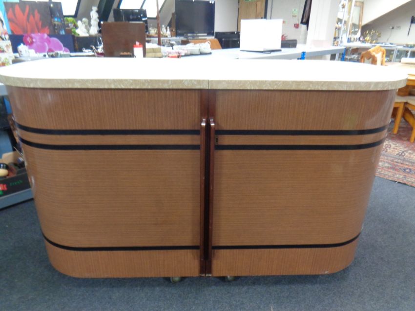 A mid 20th century Art Deco style cocktail bar, manufactured by Price Brothers of Penarth, Glamorgan, and supplied by Farrow & Jackson Ltd of London