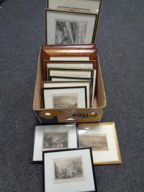A box containing a large quantity of colour and black and white etchings, local scenes etc