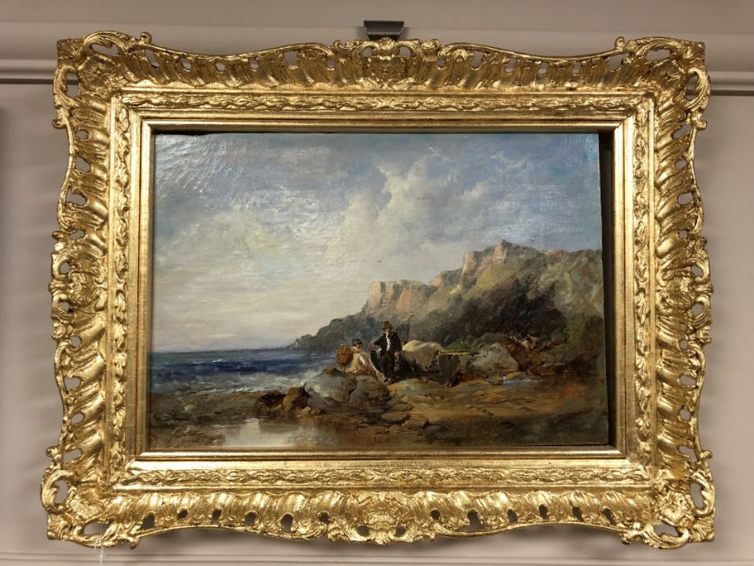 20th century school : Figures by rocks, oil on canvas, 35 x 24 cm