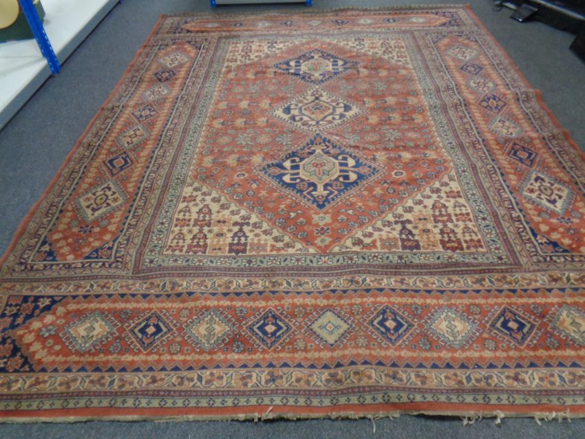 A large machine made Persian design carpet on red ground