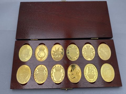 A boxed set of twelve silver gilt Arms of the Prince and Princess of Wales coins