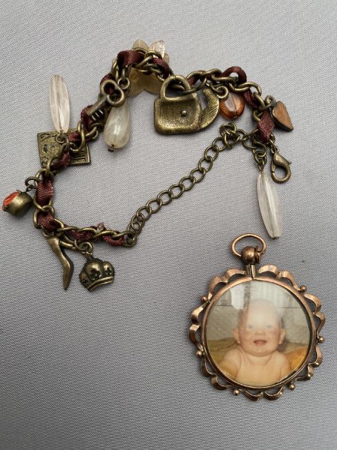 A costume charm bracelet together with a vintage pendant frame