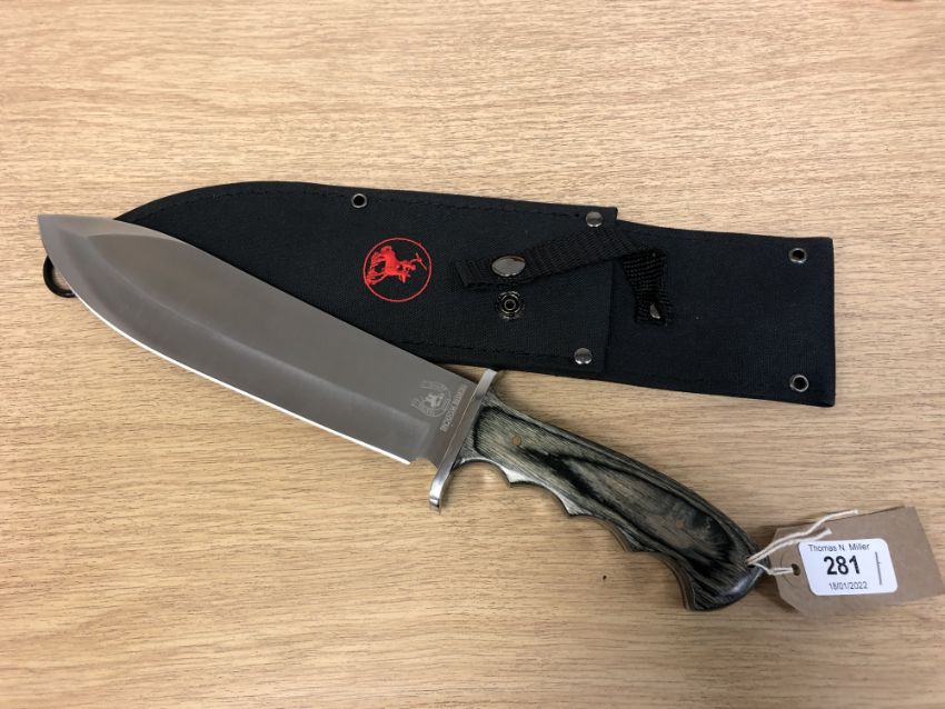 A "Rough Rider" hunting knife, overall length including handle 35 cm, with sheath.