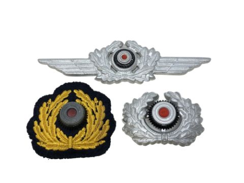 A Group of German Wreath Cap Insignia; to include two white metal examples and a cloth badge. (3)