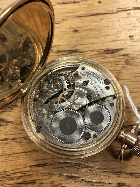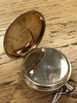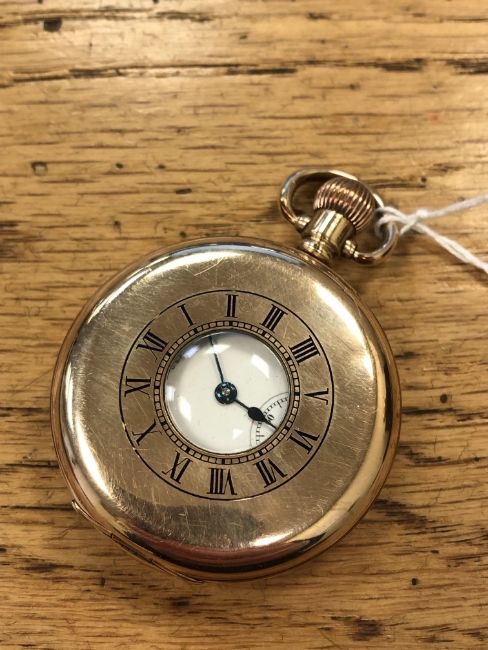 A gold plated Waltham half hunter pocket watch, movement signed and numbered 21,607,066
