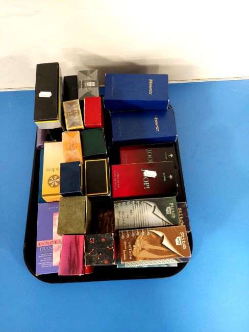 A tray containing a quantity of boxed after shaves and fragrances including Joop, Mesmerize, Daks London etc