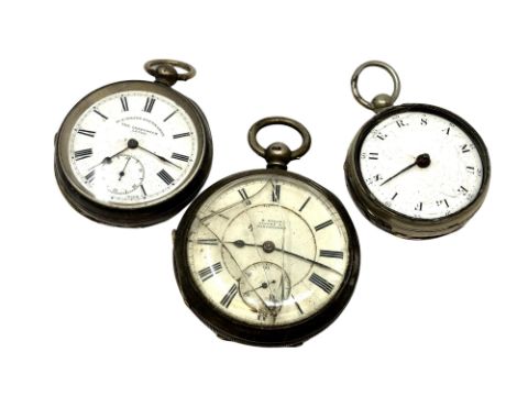 Two 19th century silver pocket watches, together with another signed Samuel Fisher (3, a/f))