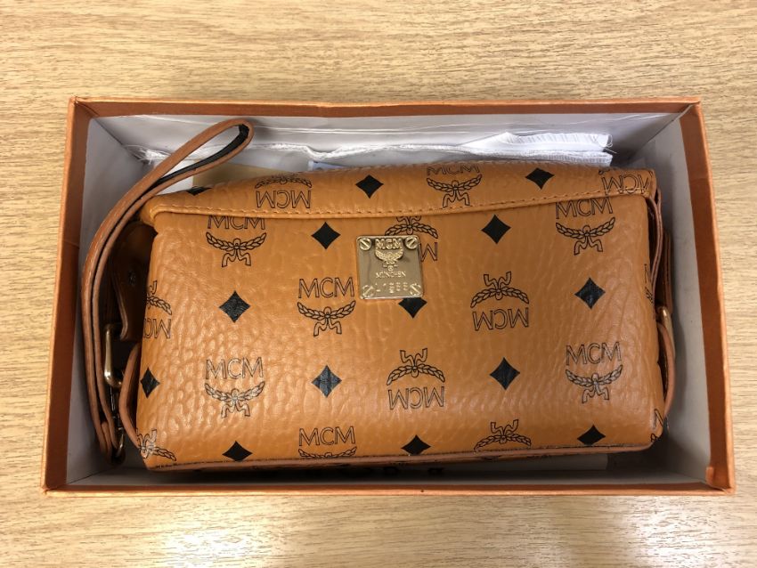 A lady's MCM leather hand bag in box with purchase receipts and dust cover