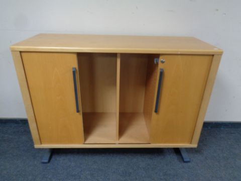 A mid 20th century Danish System B8 shutter door office stationary cabinet (no shelves)