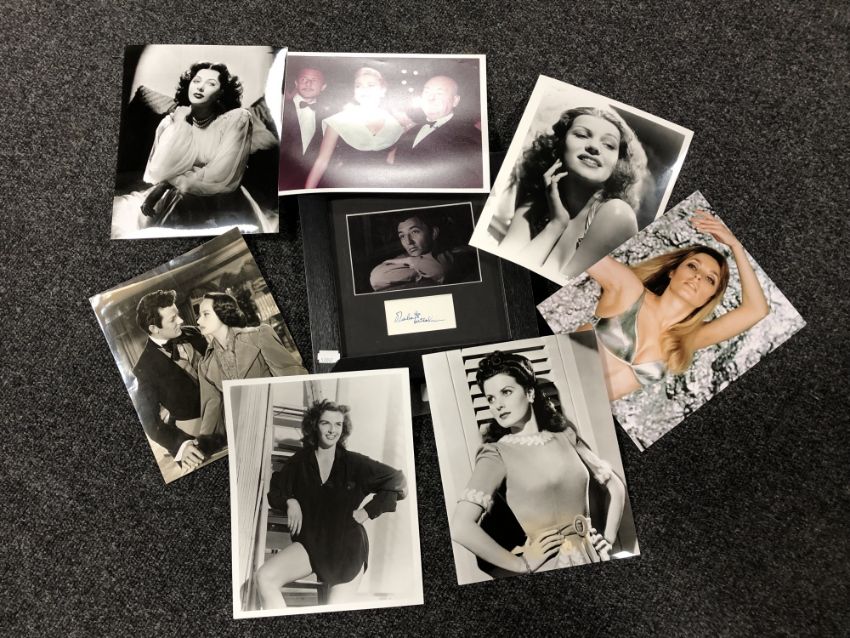 A collection of vintage press photos of Sharon Tate, Rita Hayworth, Grace Kelly, Jane Russell etc, together with a framed autograph of Robert Mitchim
