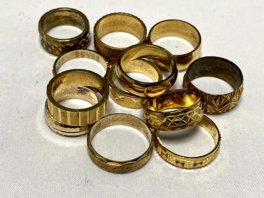 Twelve brass sample wedding bands
