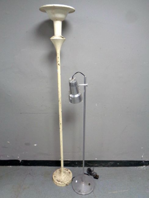 A painted cast iron standard lamp (as found) together with an angle poise floor lamp