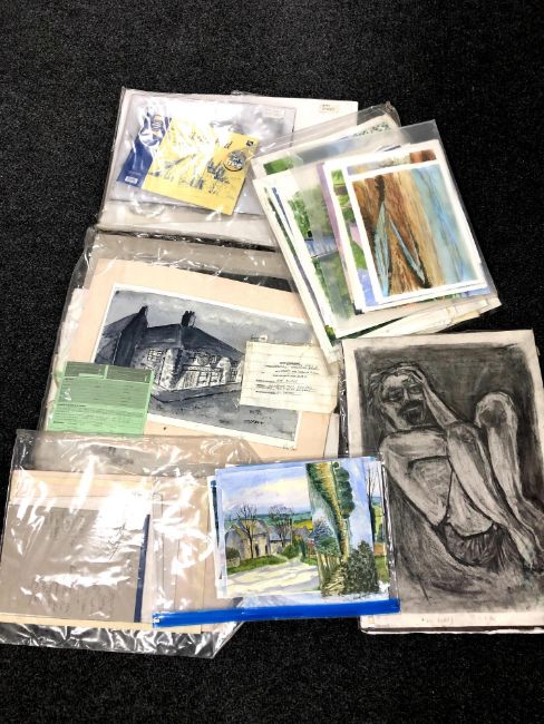 A quantity of plastic artist's folios containing a large quantity of watercolours and sketches by the late Ray Burns of Gateshead