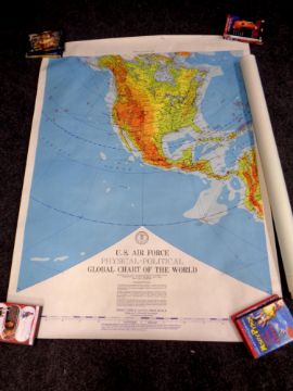 A six section 20th century US Air Force physical political global chart of the world published by the USAF Aeronautical Chart and Information Centre