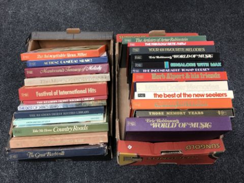Two boxes containing vinyl LP box sets including Reader's Digest, Glen Miller, Hit Parade etc