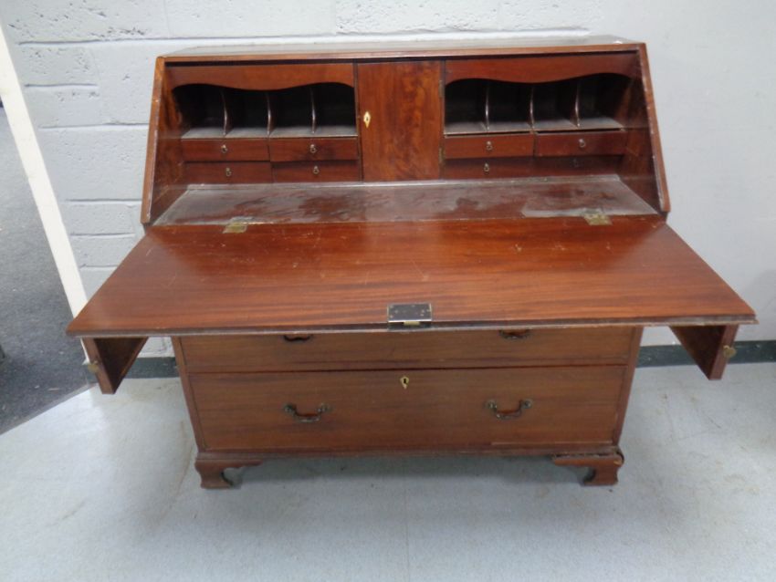 A 19th century mahogany bureau fitted four drawers on bracket feet