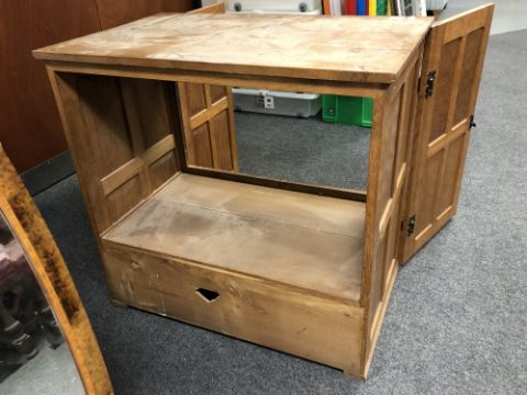 No back panel. Watermarks to top. 87cm wide by 55cm deep by 84cm high.