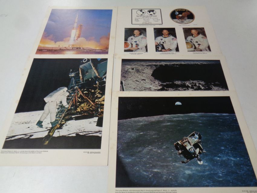 Twelve vintage NASA lithographs of Neil Armstrong and Buzz Aldrin on the moon, 14 x 11 inches
