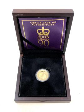 A Queen Elizabeth II 90th Birthday Gold £1 Coin, struck in 22ct gold, 7.98g, boxed with certificate of authenticity.
