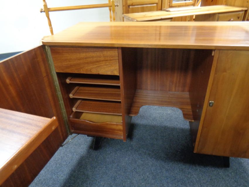 A mid 20th century teak sideboard opening up to reveal a desk, width 115 cm