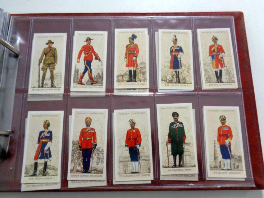An album containing a large quantity of cigarette cards by John Player to include film stars, military uniforms, airliners, coronation etc