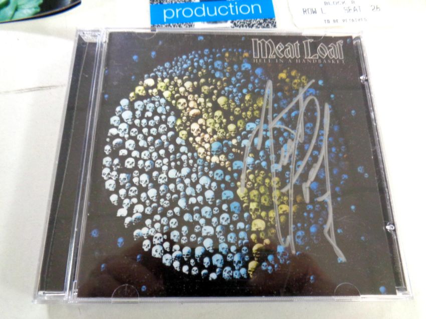 Meat Loaf signed Hell in a basket CD, Meat Loaf concert pass, together with Keith Richard, Robbie Williams and Cliff Richard concert passes.