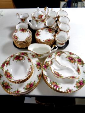 Fifty-seven pieces of Royal Albert Old Country Roses tea and dinner china