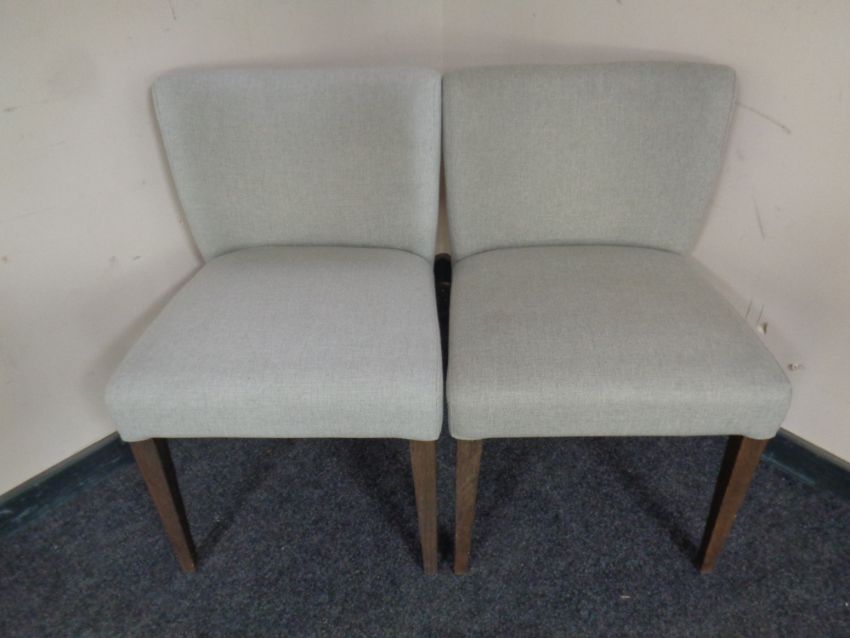 A pair of contemporary bedroom chairs upholstered in a grey fabric