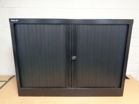 A Bisley black metal double door office cabinet, width 100cm, depth 47cm, height 71cm