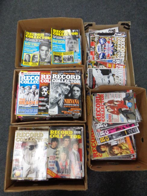 Five boxes containing record collector magazines