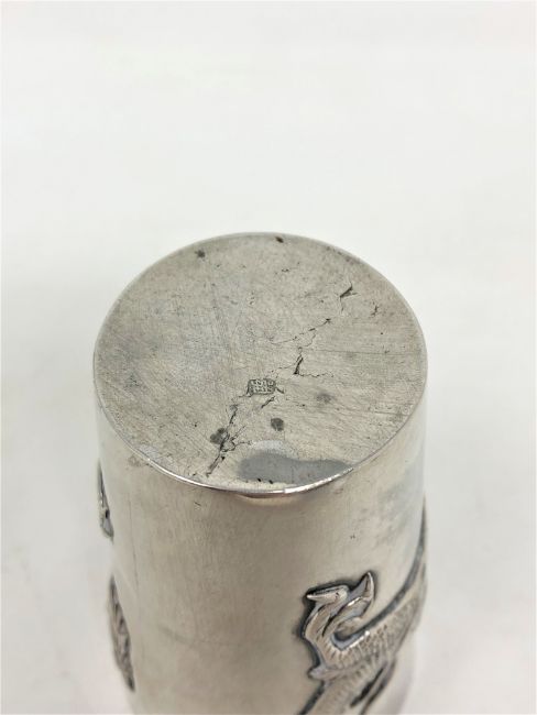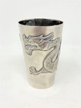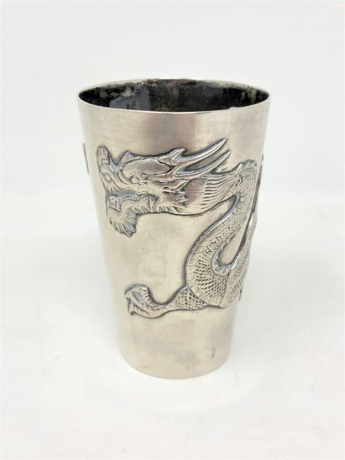 A Chinese silver metal cup, indistinctly marked to base, height 9 cm, 108.6g.