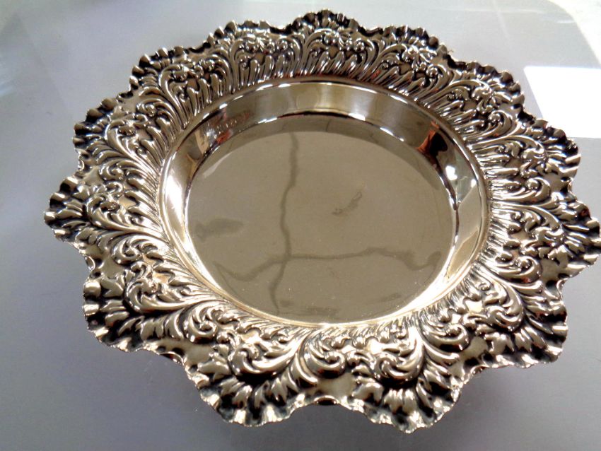 A silver embossed dish, Sheffield 1899, weight 83g, diameter 16.5 cm