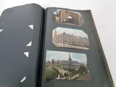 An antiquarian postcard album containing a large quantity of colour and monochrome postcards, tourism, royalty, counties etc