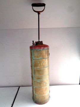 A vintage brass garden sprayer