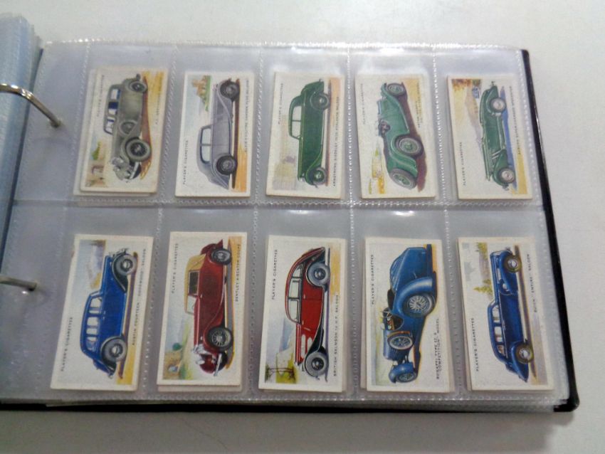 An album containing a large quantity of John Player cigarette cards, national flags, film stars, motorcars, cricket, etc