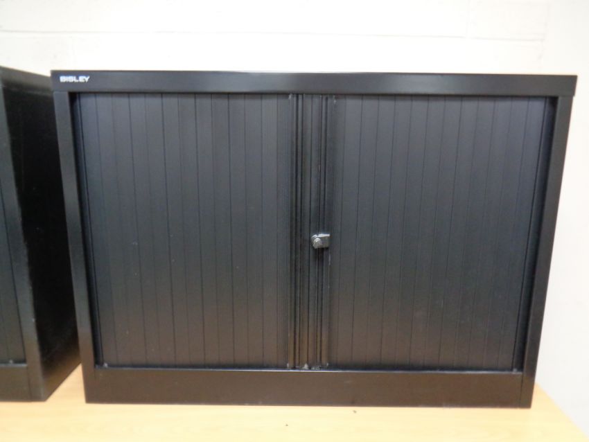 A Bisley black metal double door office cabinet, width 100cm, depth 47cm, height 71cm
