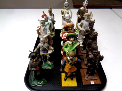 A tray containing fifteen assorted figures, soldiers, to include ceramic, resin and plastic examples