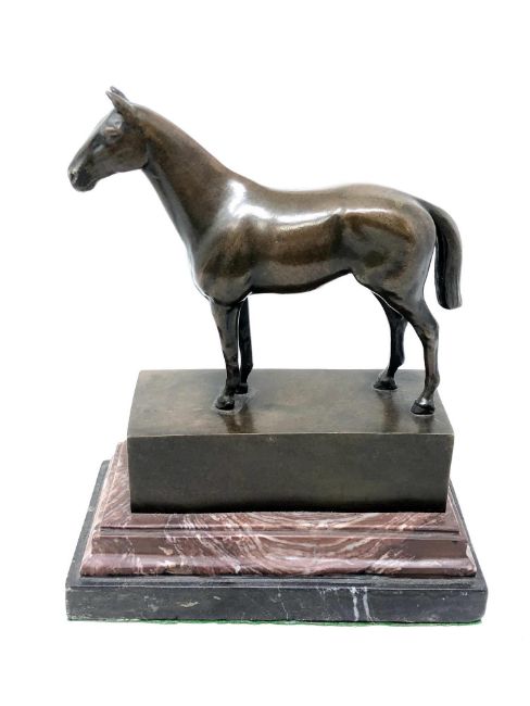 A bronze figure of a horse on two tone marble plinth, height 21 cm